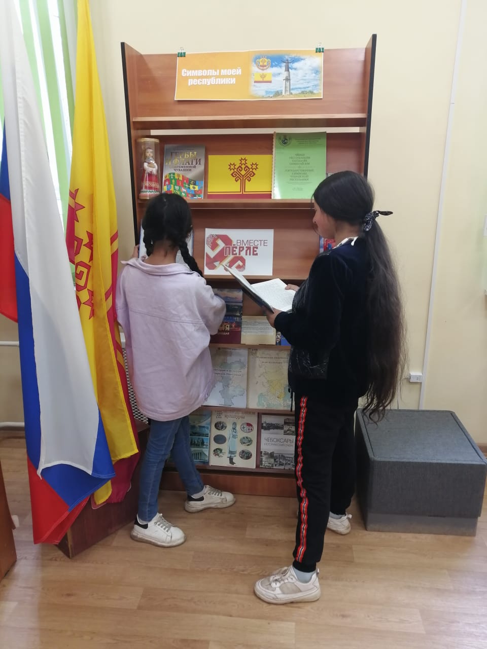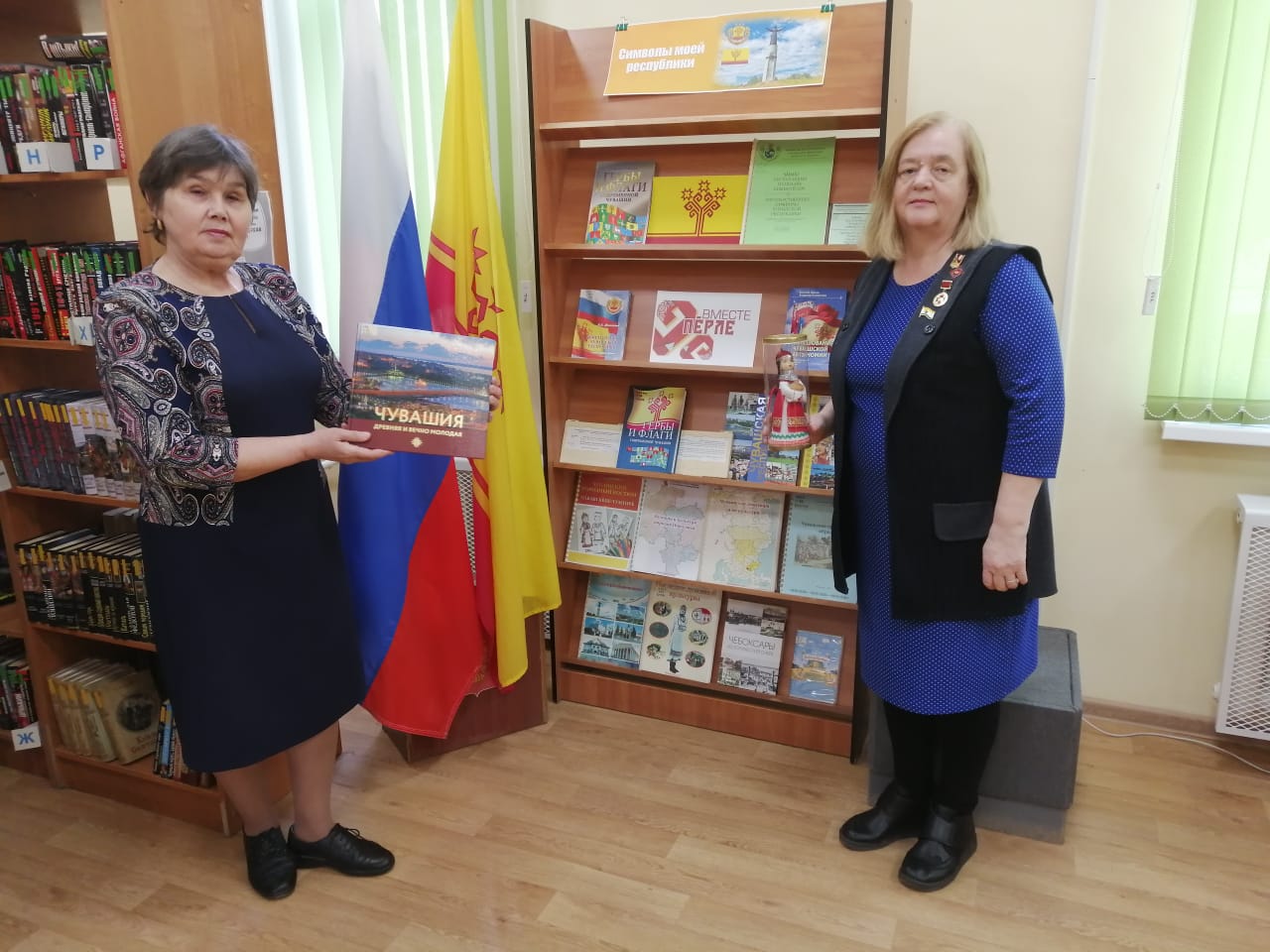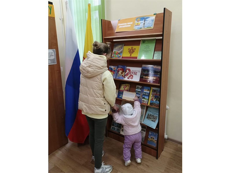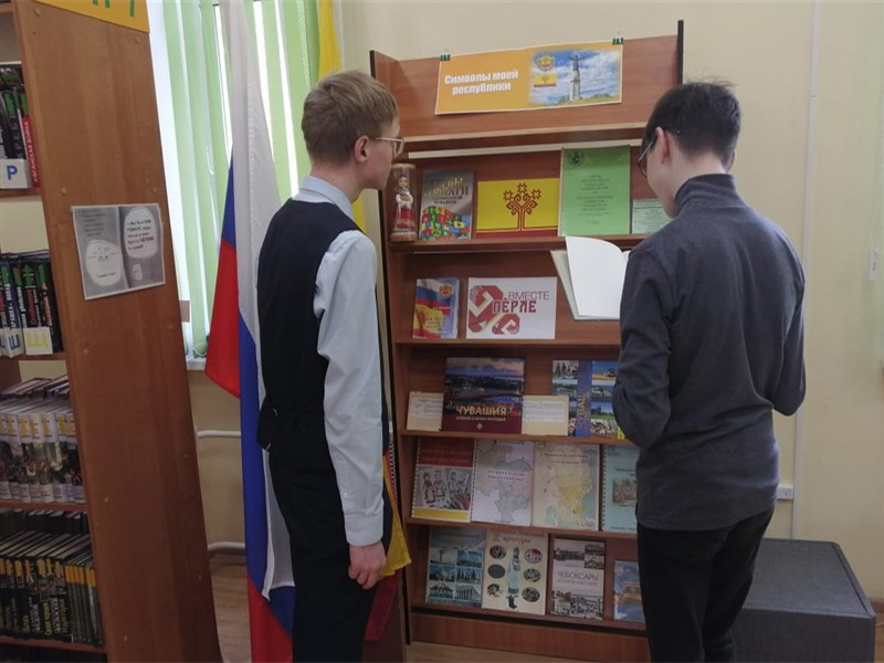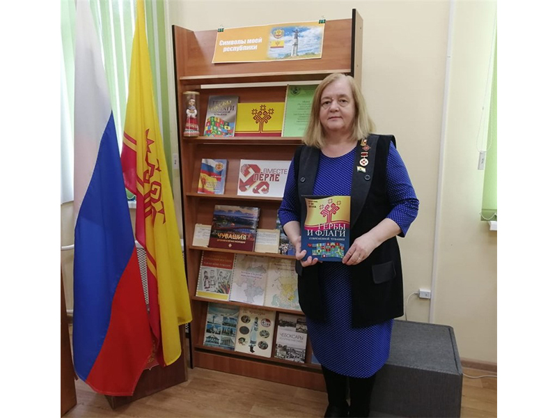 В преддверии важного государственного праздника сотрудниками отдела обслуживания Чувашской республиканской специальной библиотеки имени Л. Н. Толстого Минкультуры Чувашии была подготовлена тематическая книжная выставка-досье «Символы моей республики», действующая в секторе «Абонемент». Экспозиция предоставила читателям уникальную возможность погрузиться в мир государственных и культурных символов Чувашской Республики, познакомив с историей и значением официальных символов региона: герба, флага и гимна, рассказала об их создателях и процессе разработки. Читатели узнали о значении знаковых чувашских эмблем – «Древа жизни» и «Трёх солнц», о символике цветов государственного флага, о мелодии и тексте гимна, который перекликается с традиционными чувашскими народными песнями, что позволило увидеть их не только как официальные атрибуты, но и как живую часть культурного наследия.